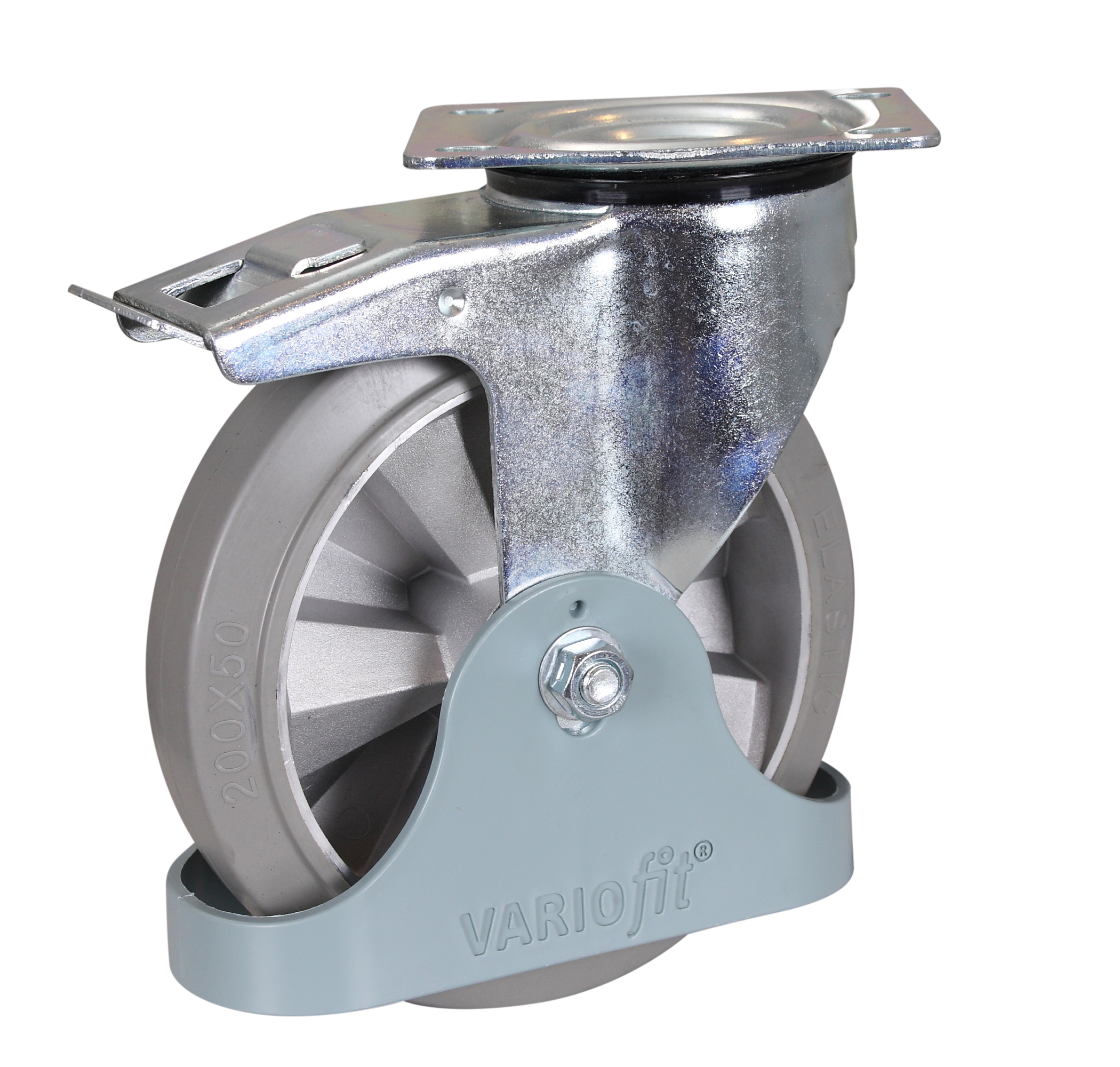 Maximale Kontrolle, sanftes Rollen: Diese Bremsrolle aus Elastikvollgummi auf robuster Aluminiumdruckgussfelge mit Präzisions-Rillenkugellager und integriertem Fußschutz überzeugt durch leisen Lauf und hohe Laufsicherheit. Temperaturbeständig von -20 °C bis +80 °C, Shorehärte 72° ± 5° Shore A und einer Traglast von 350 kg – ideal für anspruchsvolle Transportaufgaben.