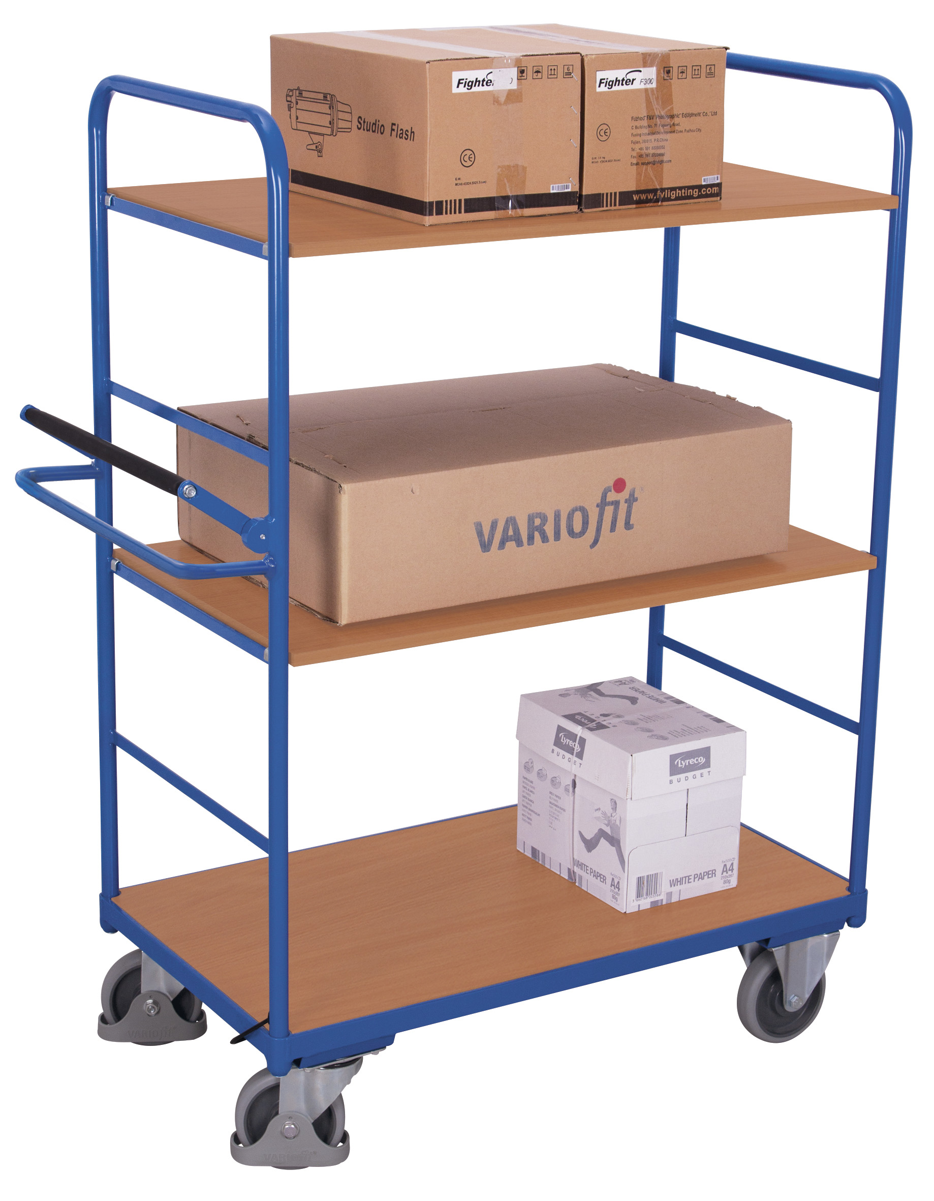 Flexibel, sicher und extrem wendig: Der Etagenwagen hoch mit Totmannbremse bietet dank cleverem Baukasten-System mit innovativem L-Profil-Boden und variabel einhängbaren Holzwerkstoff-Etagenböden perfekte Ordnung bei jedem Transport. Der Rohrschiebegriff mit Totmannsteuerung und zusätzlichem Griffbügel garantiert sicheres Manövrieren, während spurlose, graue Rollen mit Präzisions-Rillenkugellager, Faden- und Fußschutz für ruhigen, sauberen Lauf sorgen – ideal für Lager, Werkstatt und Logistik.