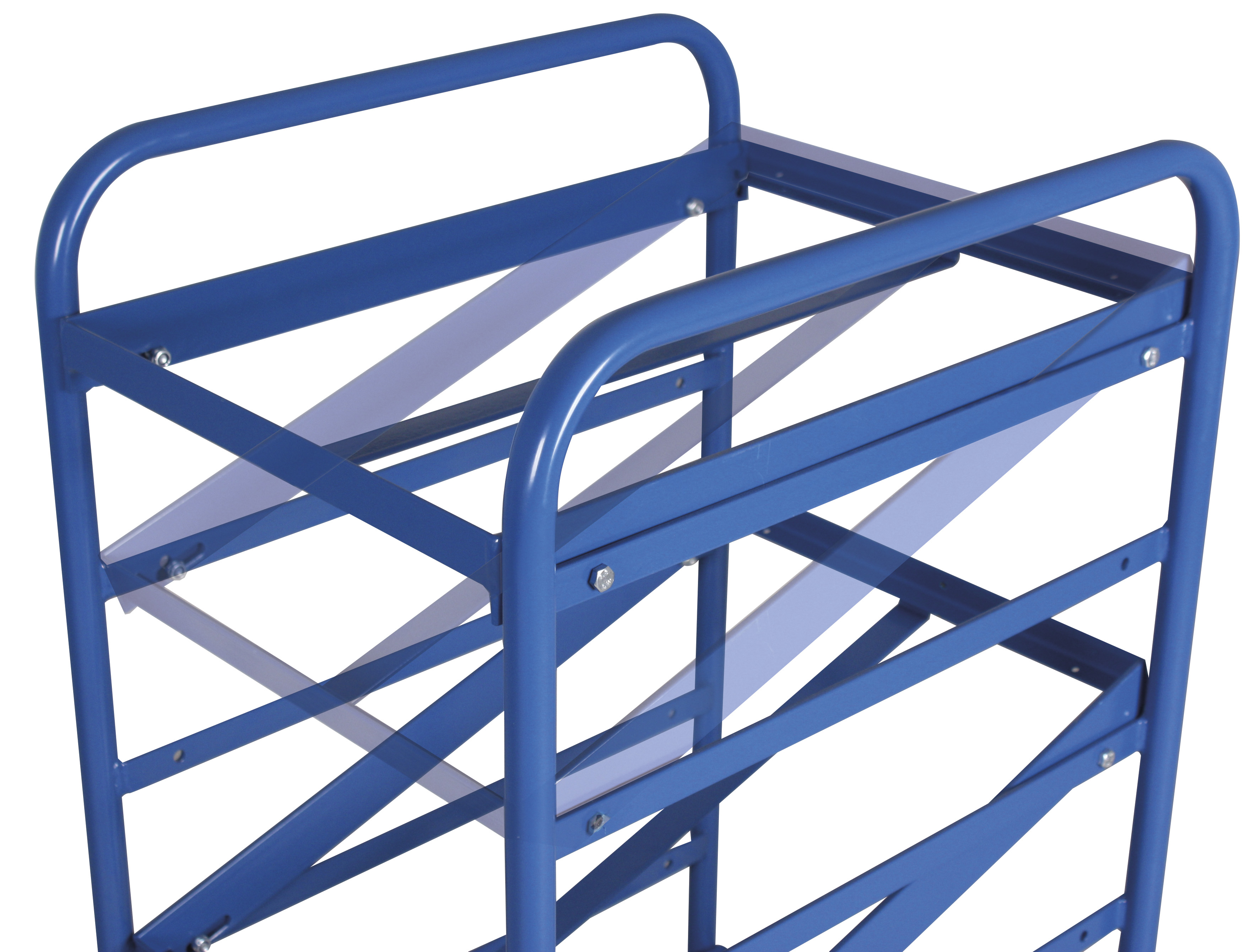 Der Eurokastenwagen ist Ihr zuverlässiger Profi für den sicheren Transport von Kunststoffkisten 600 x 400 mm. Die verschraubte Stahlschweißkonstruktion mit neigbaren Etagen (17° oder 32°) und 27 mm hohem Rand bietet stabilen Halt, während die schlag- und kratzfeste Oberfläche für eine lange Lebensdauer sorgt.