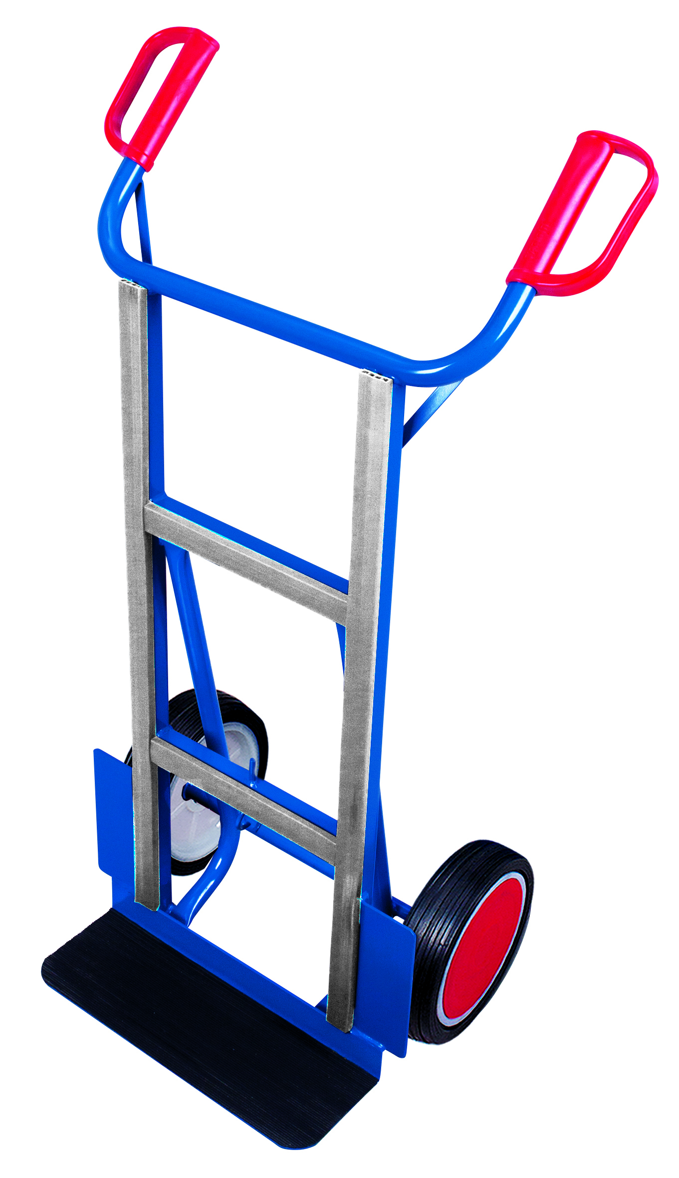 Schweißkonstruktion aus Stahl 2 innovative PVC-Sicherheitshandgriffe Schaufel aus Stahlblech gebogenen Querstreben und senkrechte Streben dauerhaft oberflächengeschützt schlag- und kratzfest Luftbereifung auf Stahlfelge oder Vollgummibereifung auf Spezial-Kunststofffelge mit Präzisions-Rillenkugellager und Kunststoffradkappe.