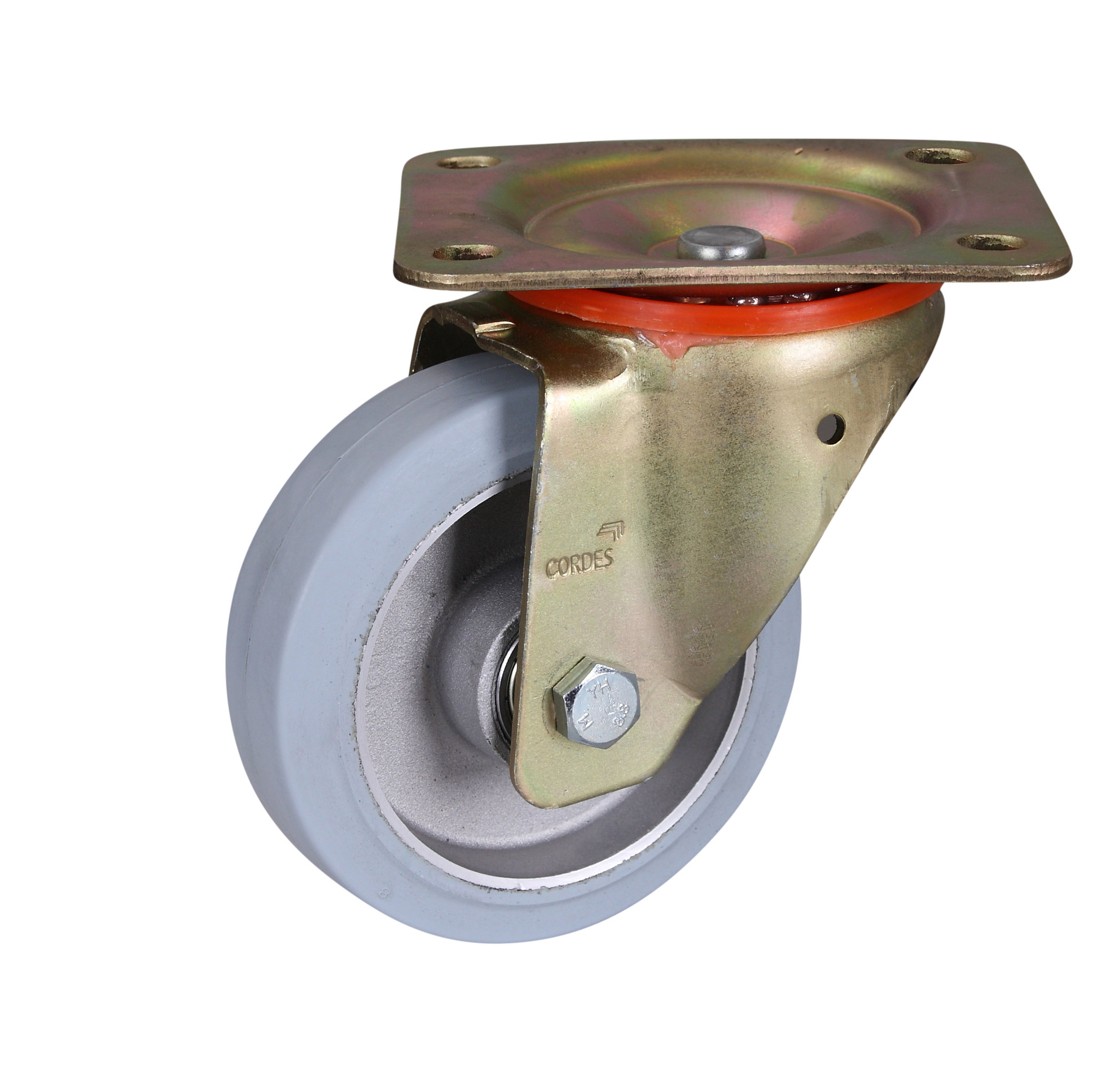 Die Lenkrolle Elastikvollgummi 125 x 450 mm überzeugt durch ruhigen Lauf und hohe Laufsicherheit. Das graue Elastikvollgummi mit Shorehärte 72° ± 5° Shore A schont empfindliche Böden und reduziert Vibrationen. Auf der Aluminiumdruckgussfelge mit Präzisions-Rillenkugellager ausgeführt, läuft sie besonders leicht und langlebig – ideal für professionelle Wagen und Geräte bis 200 kg Traglast, auch bei Temperaturen von -20° bis +80 °C. EAN: 4035694103573.