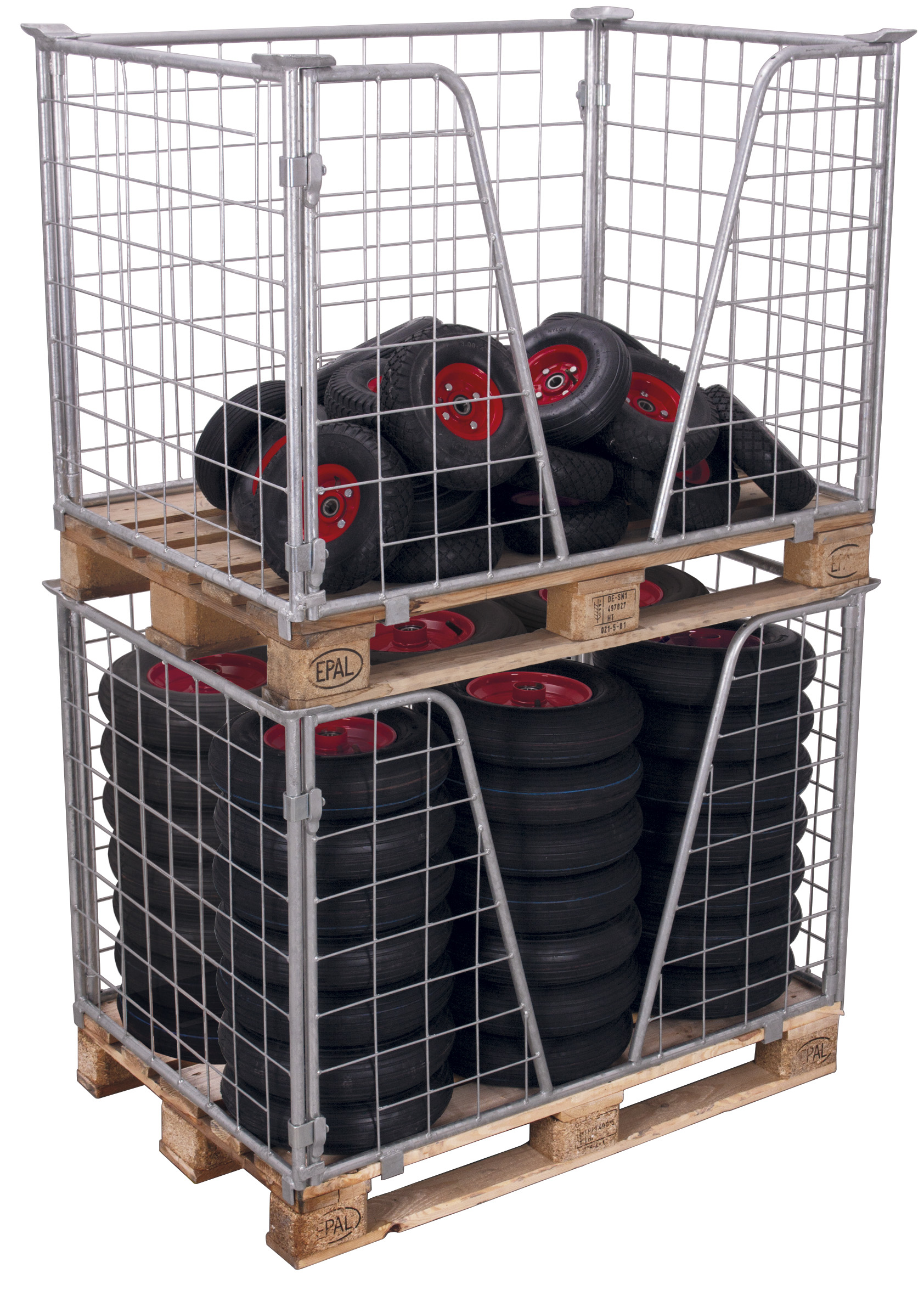Maximale Flexibilität für Lager und Transport: Der Palettenaufsatz Typ 63, verzinkt ist eine robuste Schweißkonstruktion aus Stahl, exakt passend für Europaletten. Die vergitterten Seiten mit 100 x 100 mm Maschenweite sichern Ihre Ware zuverlässig, während der V-förmige Ausschnitt an der Längsseite den schnellen Zugriff ermöglicht. Stapelbar, feuerverzinkt und bei Nichtgebrauch platzsparend zusammenlegbar – ideal für ein effizientes Lager.