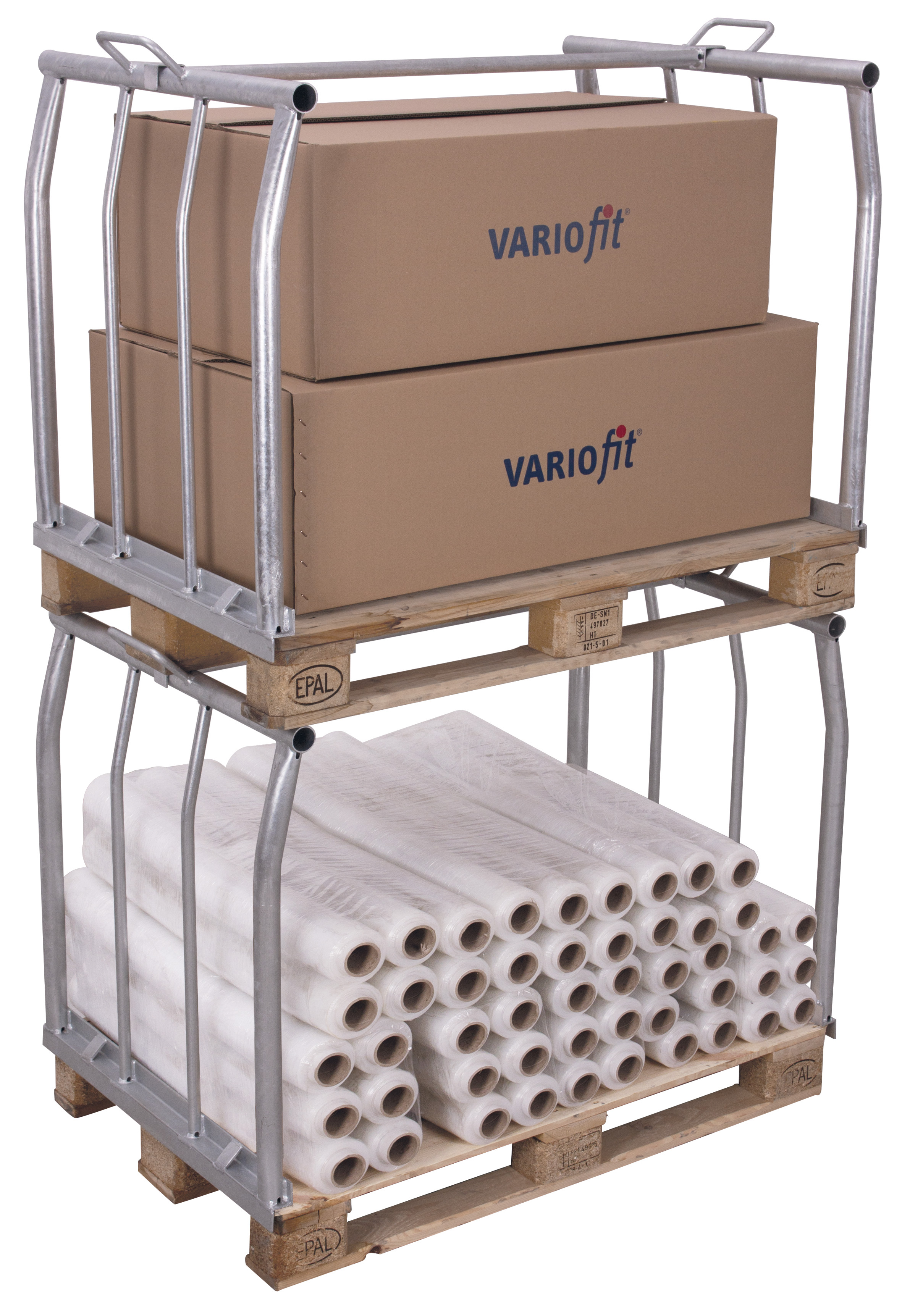 Palettenaufsatz Typ 66, verzinkt – die robuste Schweißkonstruktion aus Stahl für Europaletten. Dank stapelbarer Bauweise nutzen Sie Ihre Lagerhöhe optimal, auch wenn der Aufsatz gestapelt nicht verfahrbar ist. Schmalseiten mit senkrechten Rundrohren bieten sicheren Halt, offene Längsseiten und Verbindungsrohr erhöhen die Stabilität. Bei Nichtgebrauch lässt sich der Aufsatz platzsparend zusammenlegen.