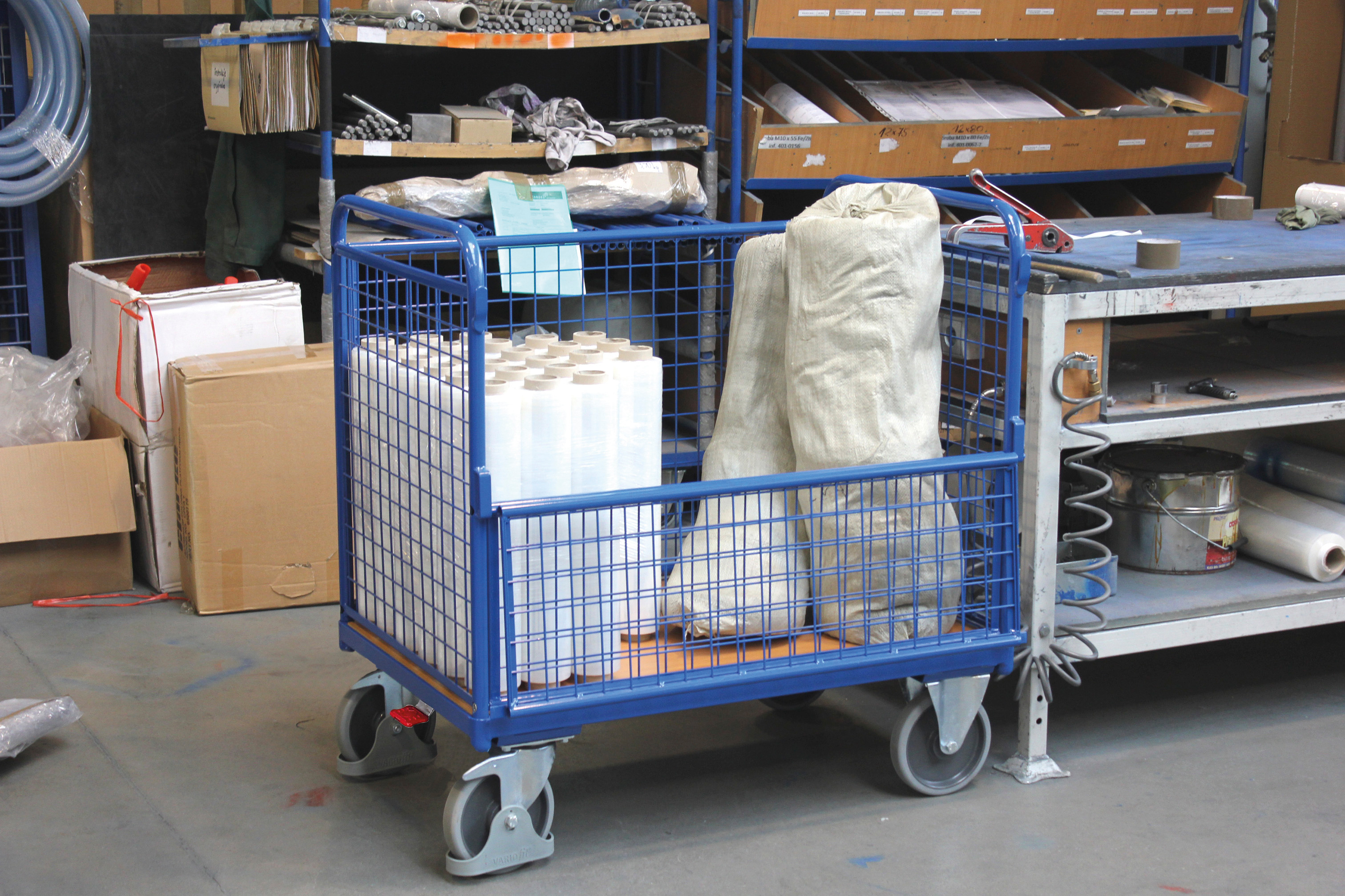 The Drahtkastenwagen is a robust, modular transport solution for demanding environments. Its innovative frame section with wood-based load surface and mesh walls (50 x 50 mm, 710 mm high) keeps goods secure and visible. A flap-down half wall offers flexible loading, while the permanent surface protection is impact- and scratch-resistant.