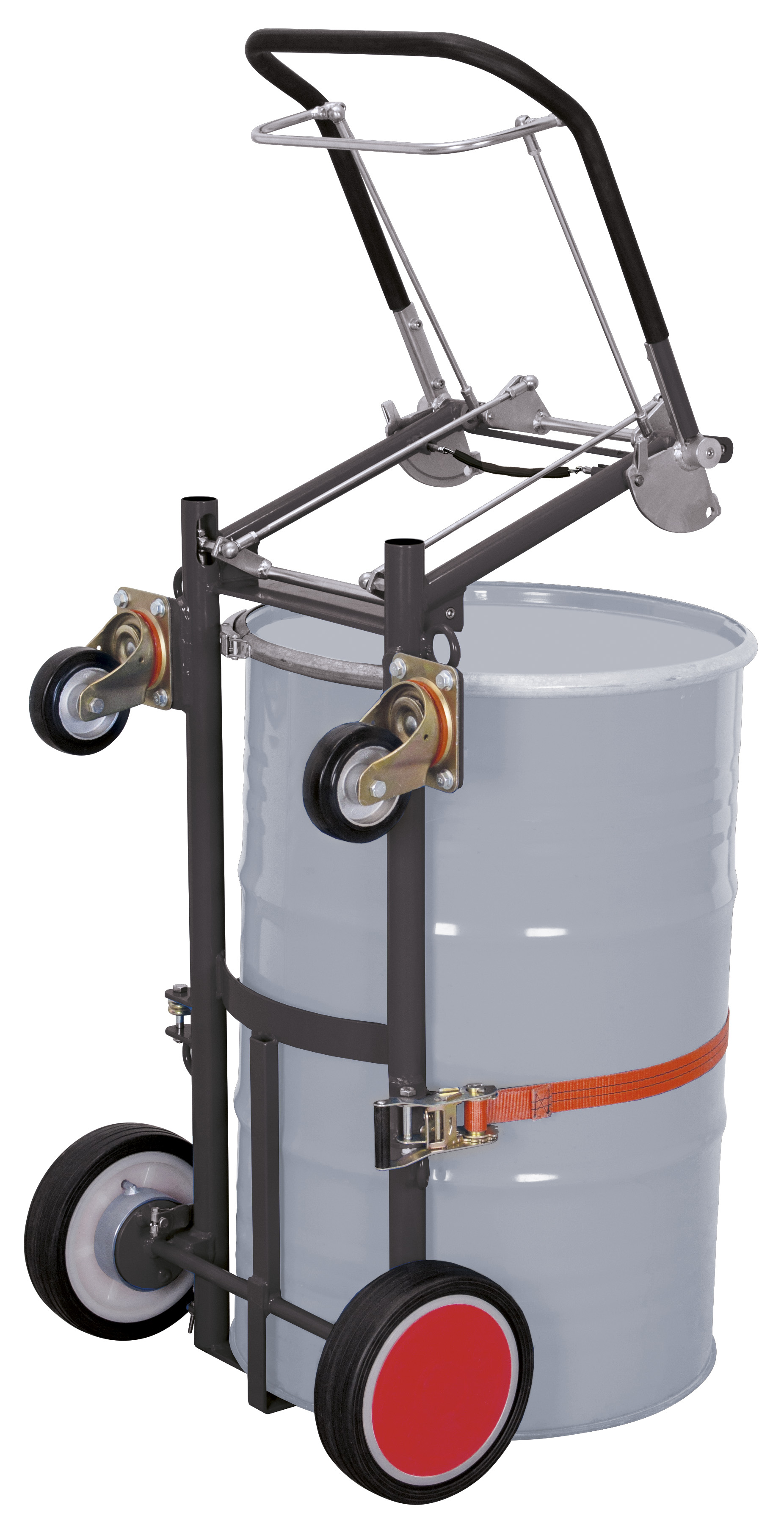 Perfectly suited for 60 and 200 litre steel sheet drums with rim, the trolley features sturdy eyelets and an integrated tension belt to keep every drum firmly in place during transport, positioning and storage.
