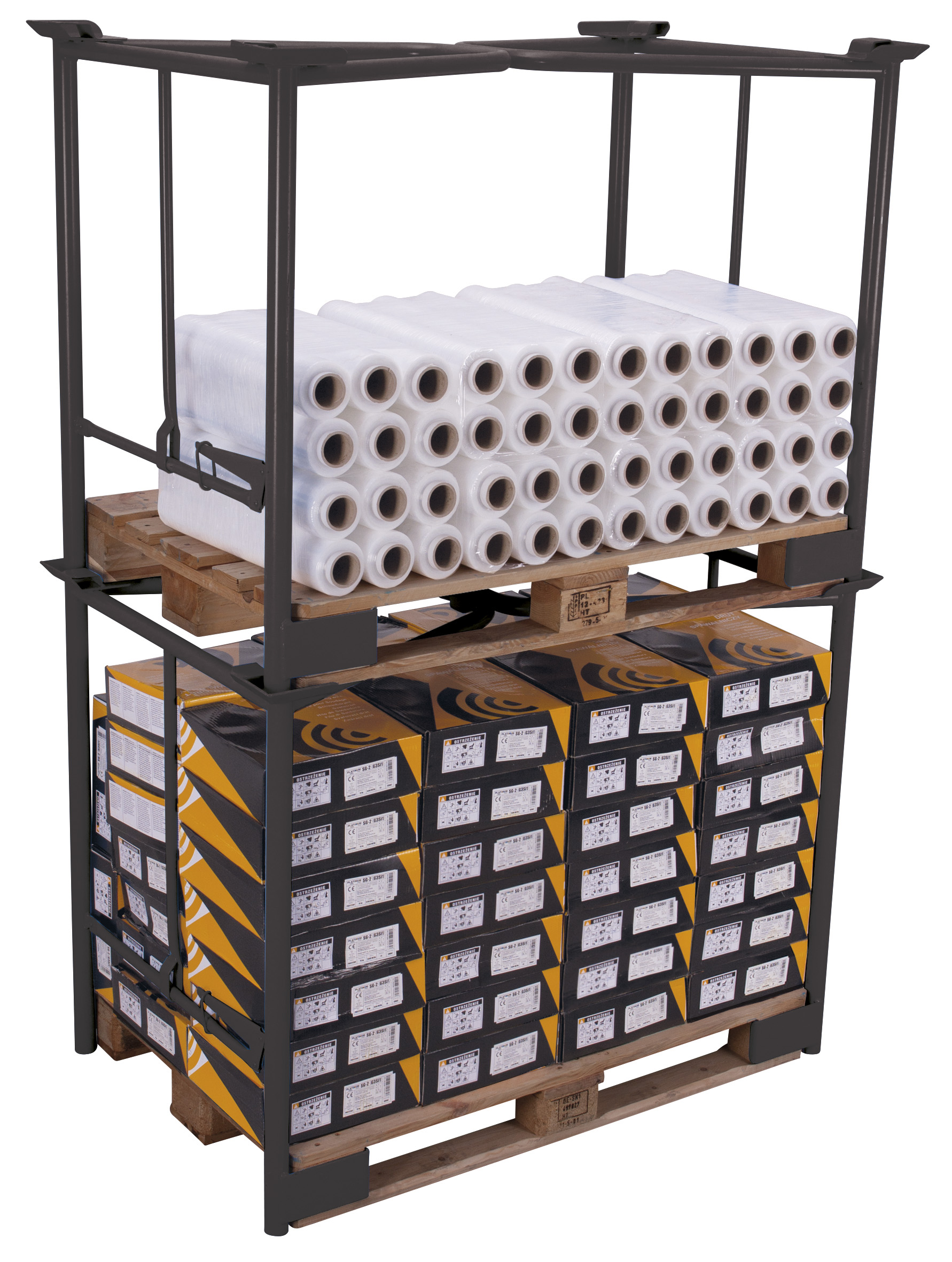 Palettenaufsatz Typ 65K bietet zuverlässige Sicherheit für Ihre Lagerlogistik. Die welded steel construction ist speziell für Euro pallets 1200 x 800 mm ausgelegt und bleibt auch gestapelt stabil, ohne zu verrutschen. Zwei horizontale Rahmen werden oben eingehakt und per manueller Klemmfunktion gesichert. Bei Nichtgebrauch lässt sich der Aufsatz platzsparend zusammenklappen, während die dauerhafte, schlag- und kratzfeste Oberfläche für langfristigen Schutz sorgt.