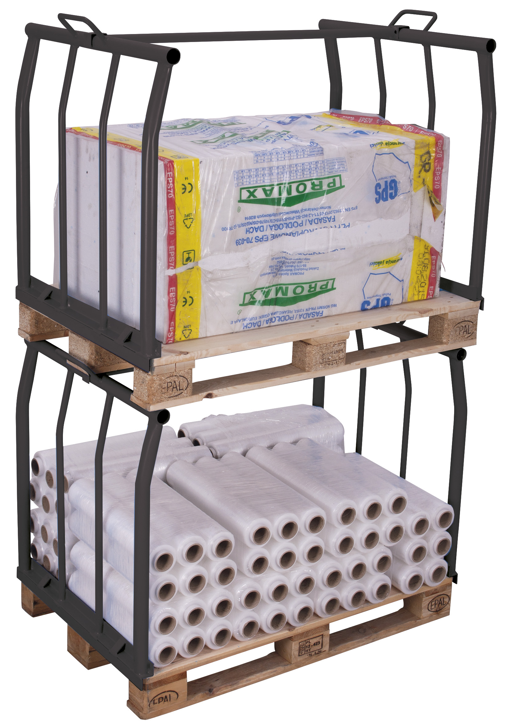 Palettenaufsatz Typ 66 is the robust storage solution for demanding logistics. Its welded steel construction fits Euro pallets 1200 x 800 mm perfectly and is fully stackable without shifting. End walls with vertical tubular bars ensure secure load retention while side walls remain open for fast access.