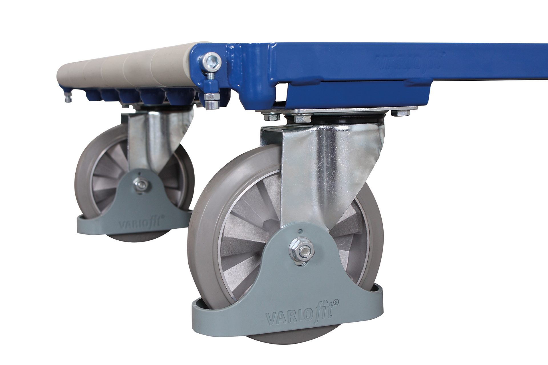 (1 swivel and 1 fixed castor is braked on one longitudinal side).