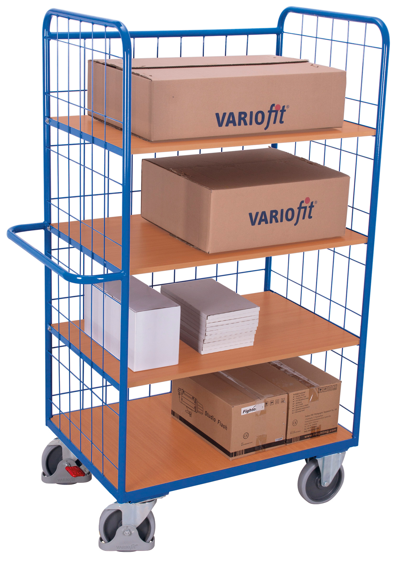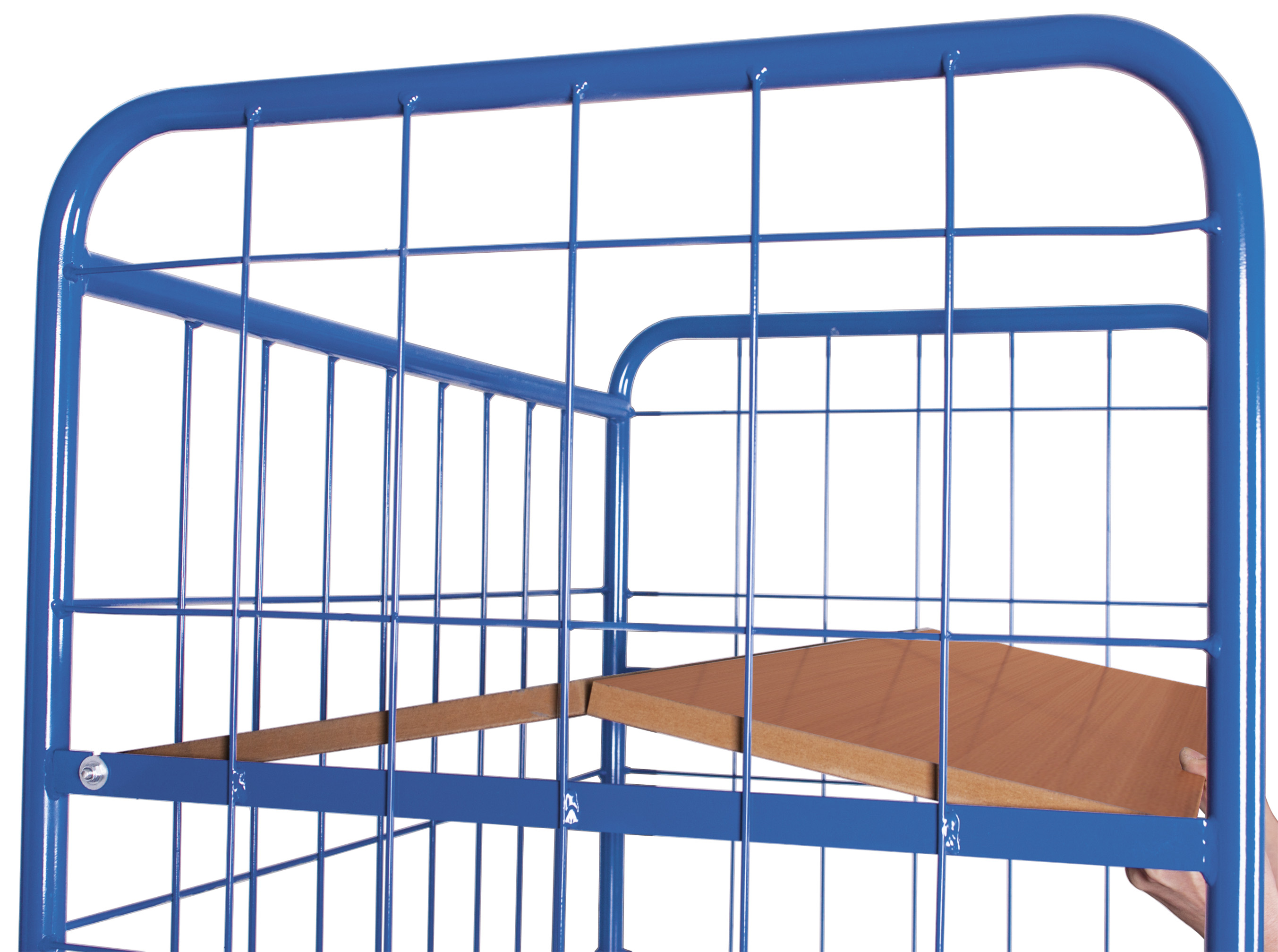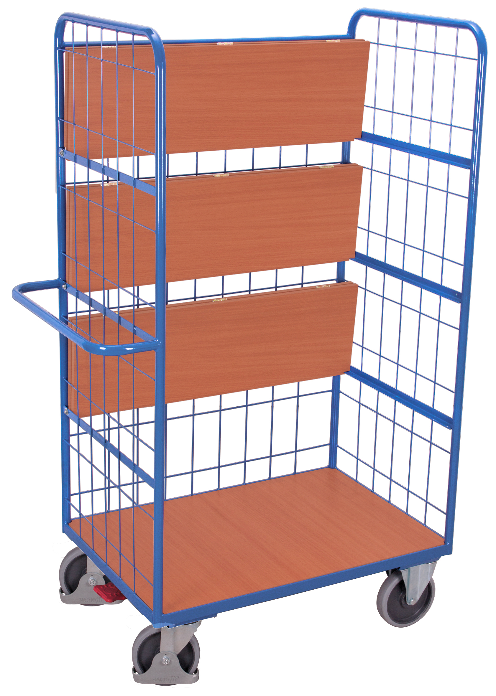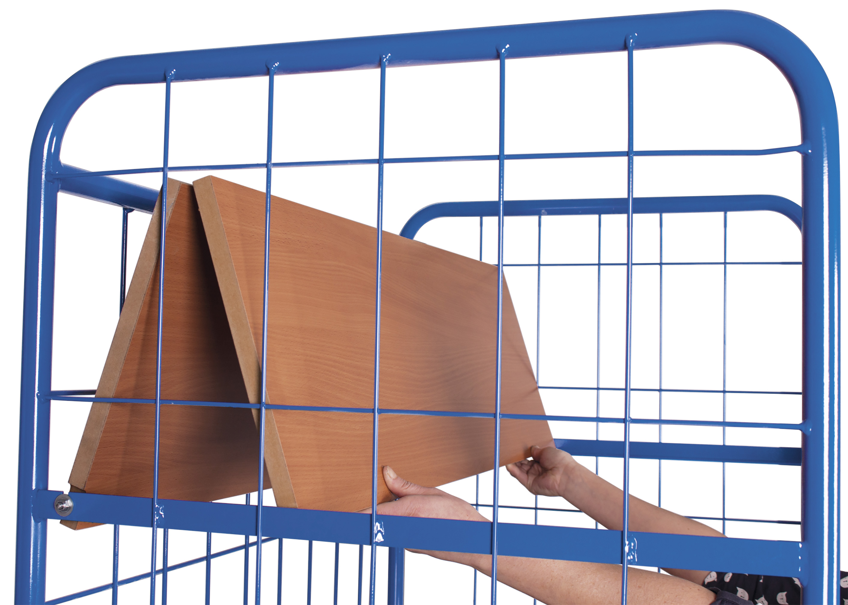 Maximise vertical storage with this high tier trolley featuring a robust welded steel construction and innovative frame section. The fixed tubular push bar ensures secure manoeuvring, while the folding shelves and mesh end and side walls offer flexible, safe loading.