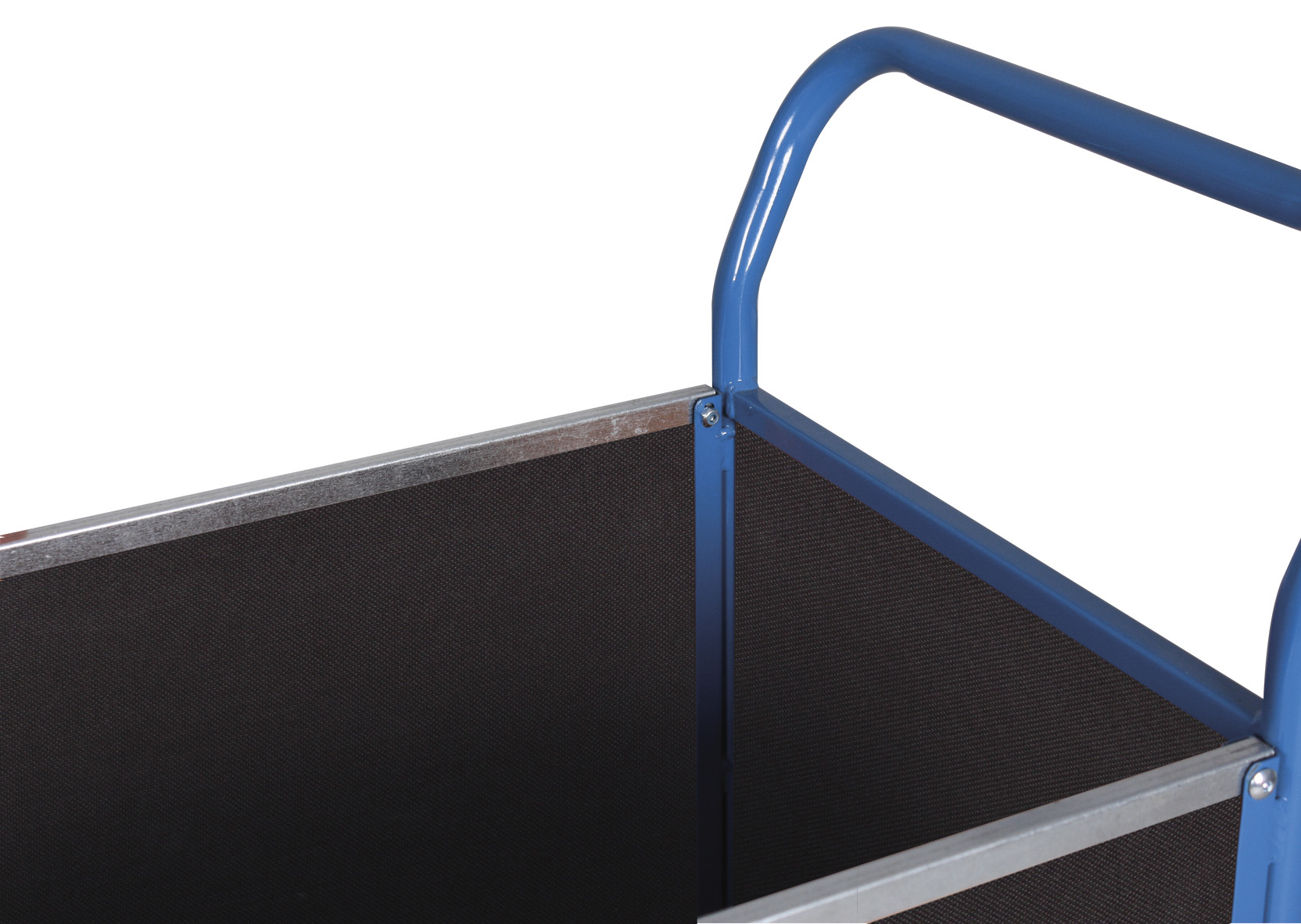 The 500 mm high removable side wall allows flexible loading of bulky goods, while elastic solid-rubber tyres on cast aluminium rims with precision ball bearings guarantee quiet, smooth running. Two fixed castors and two swivel castors with the patented EasySTOP braking system offer reliable stability and precise positioning during loading and unloading.