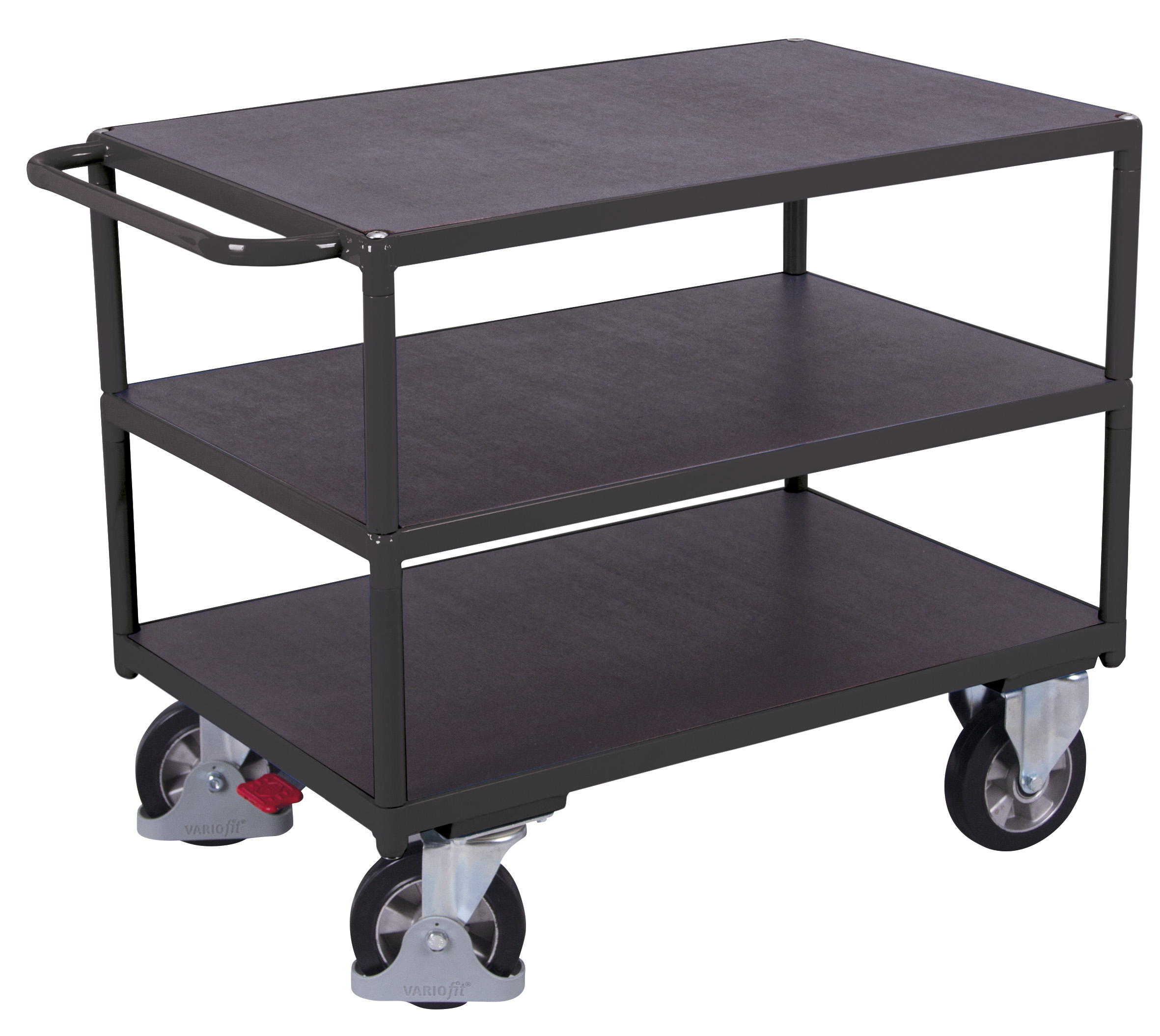 Conçu pour la haute charge, ce chariot à plateaux professionnel offre trois niveaux de transport robustes en contreplaqué hydrofuge, à surface sérigraphiée antidérapante, résistante aux chocs et aux rayures.