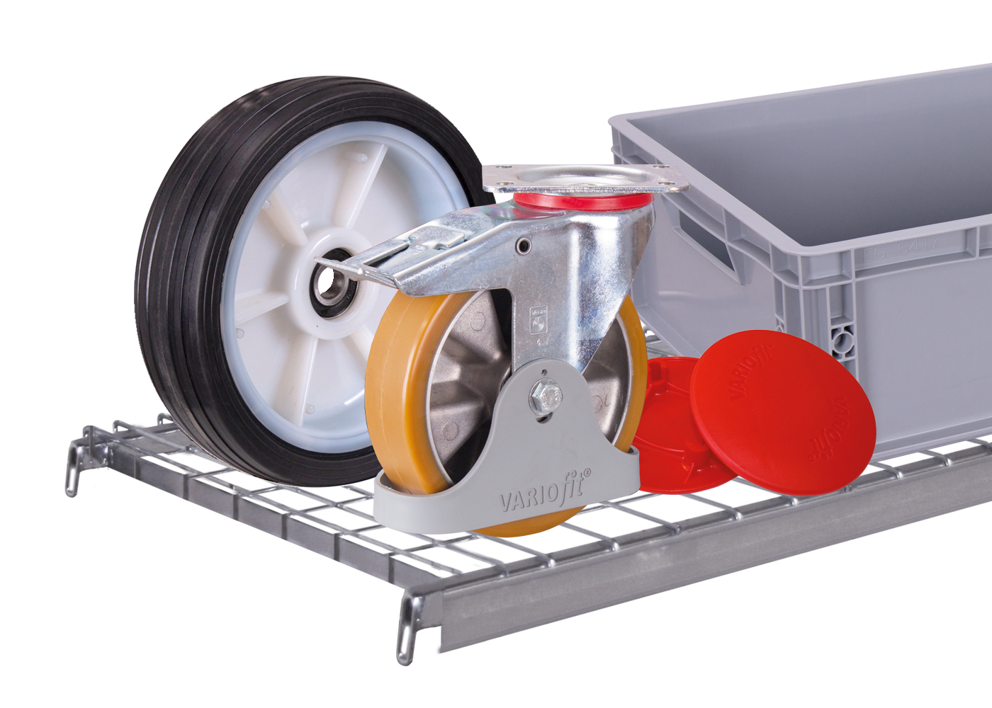 Bremshebel in ergonomischer Höhe, Bremse auf die Vollgummiräder / Lenkrollen wirkend