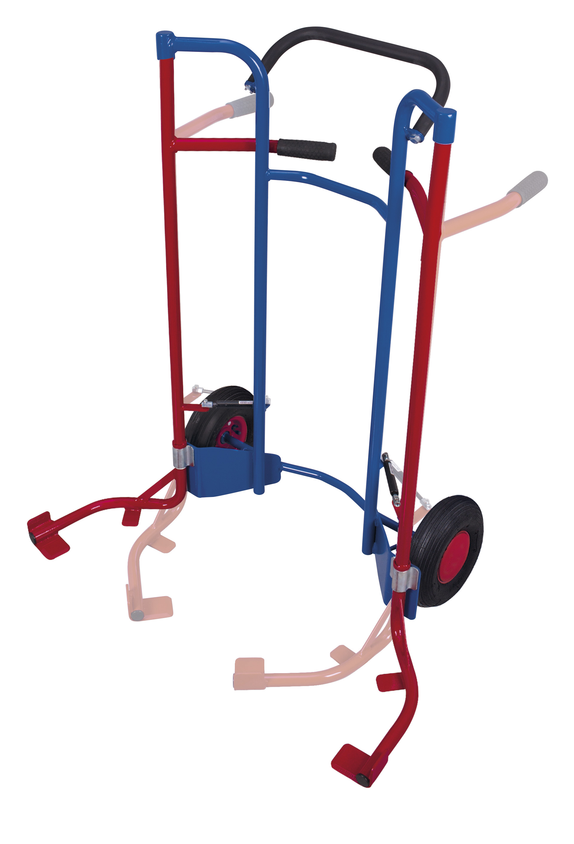 Specjalna blacha osłaniająca koła oraz system dźwigni na sprężynach gazowych umożliwiają niezwykle łatwe manewrowanie i bezpieczne przewożenie opon.