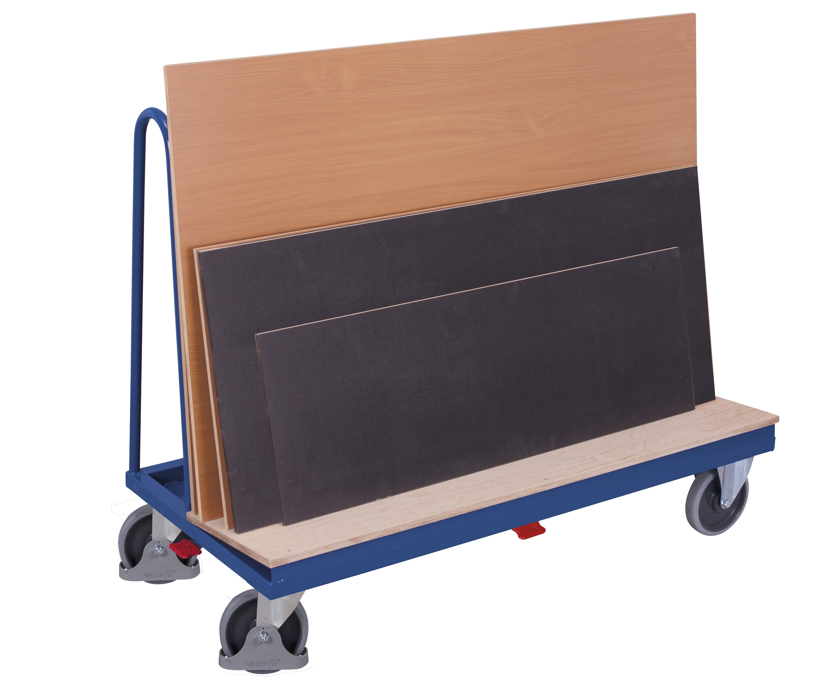 Plattenwagen to jednostronny wózek do transportu płyt o spawanej, stalowej konstrukcji i powierzchni ze sklejki z praktycznym nachyleniem 5°. Wysokie pałąki boczne 915 mm zapewniają stabilność, a wysoka odporność na uszkodzenia mechaniczne gwarantuje długą żywotność.