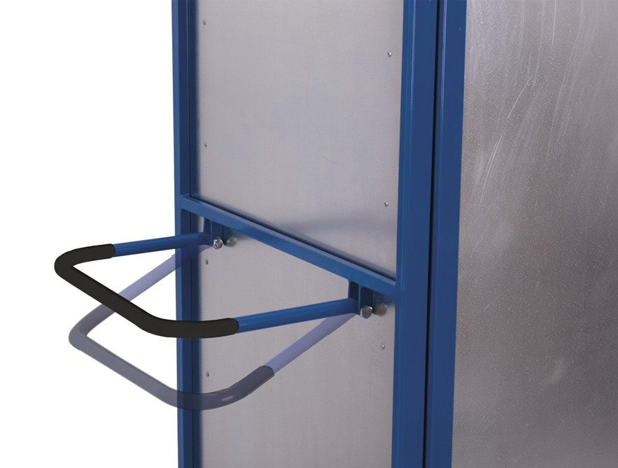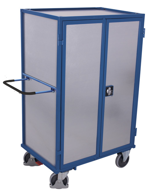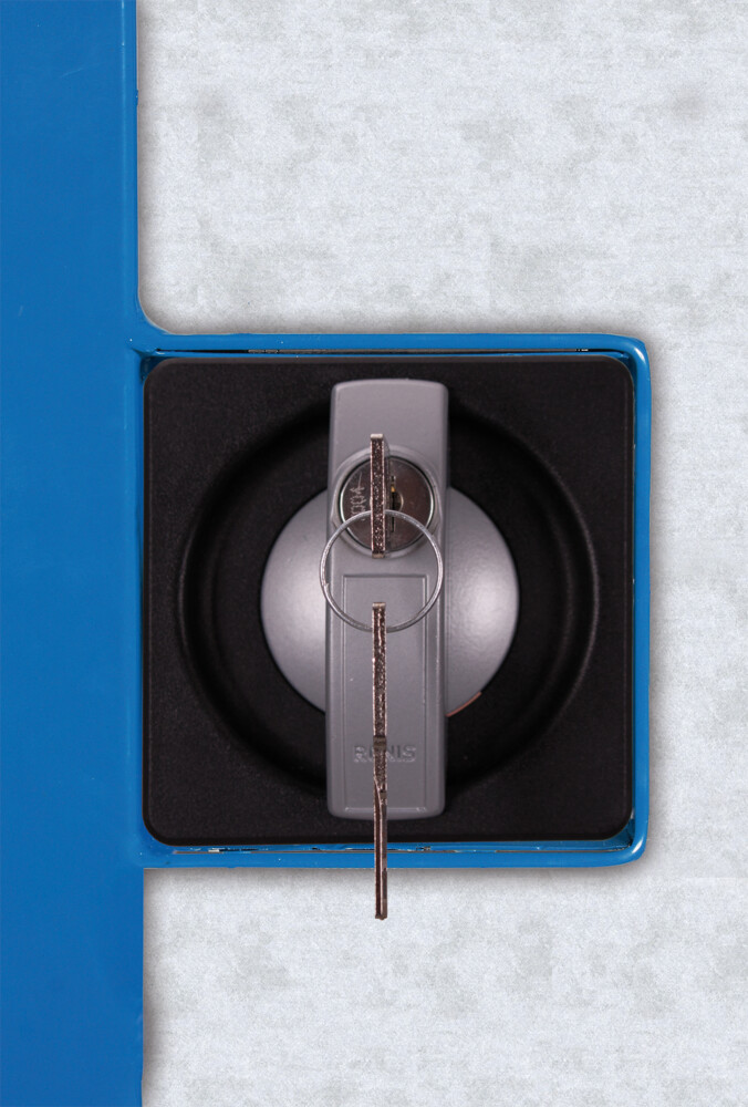 Construction en acier, entièrement soudée, avec porte battante avec 2 volets possèdent un verrouillage avec poignée tournante